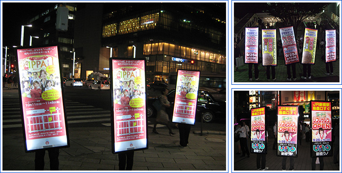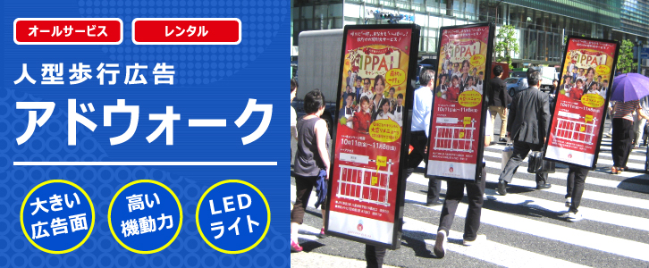実施内容 | 人型歩行広告 アドウォーク 3台
