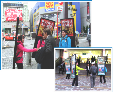 当店は繁華街の中にお店があり色々なお店のスタッフが呼込みをしているのでお客の呼び込みに苦労していました。アドウォークを使用してからは通行人の方からよく(目立つから)注目されるようになり当店に足を運んでいただける確率が上がった気がします。