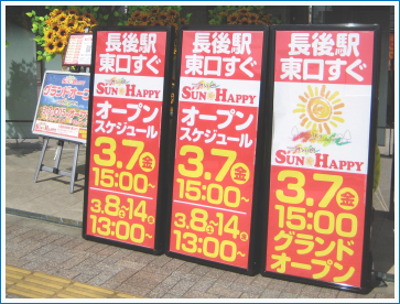 アドサインは広告面が広く、ポスターの取り換えもワンタッチでできるためお客様に知ってもらいたい