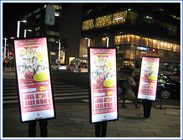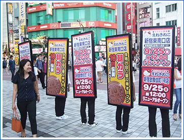実施内容 | 人型歩行広告 アドウォーク 3台