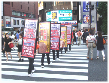 当店は繁華街の中にお店があり色々なお店のスタッフが呼込みをしているのでお客の呼び込みに苦労していました。アドウォークを使用してからは通行人の方からよく(目立つから)注目されるようになり当店に足を運んでいただける確率が上がった気がします。